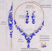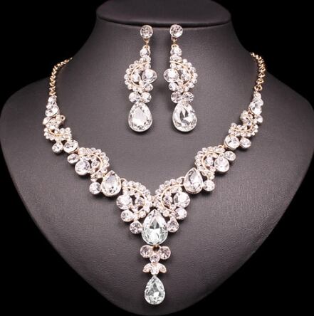 ファッションインドのブライダル ネックレス&ピアスセット ドバイ高級クリスタルウェディングジュエリーセット ゴールド色の女性の衣装ジュエリーギフト クリア【c0009】