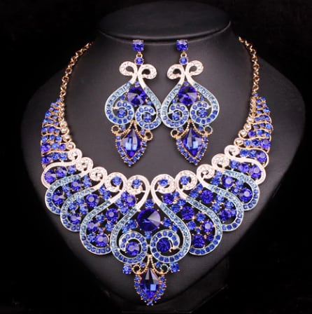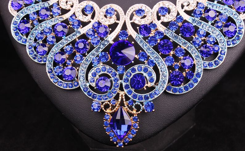 豪華なブライダルジュエリーセット ウェディング ネックレス ピアスセット 女性のパーティーコスチュームアクセサリー インドのジュエリー ダークブルー【c0024】 | Pinky5 Costume jewelry