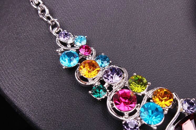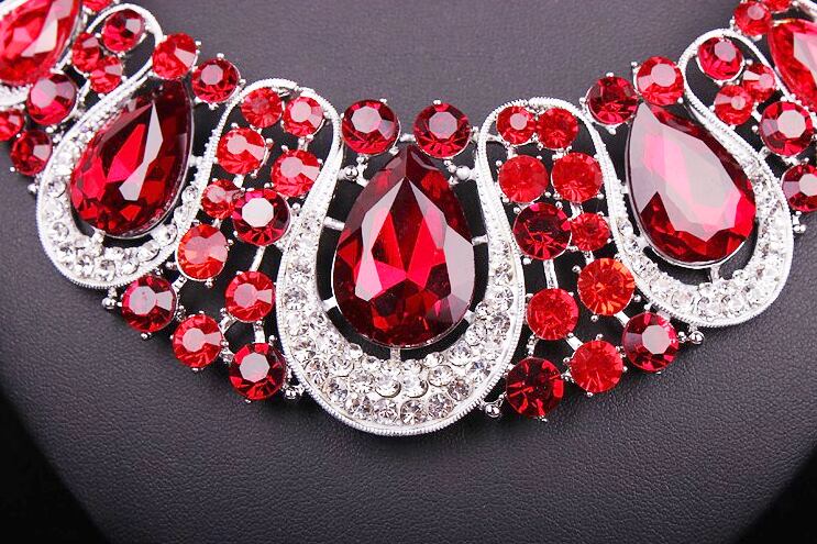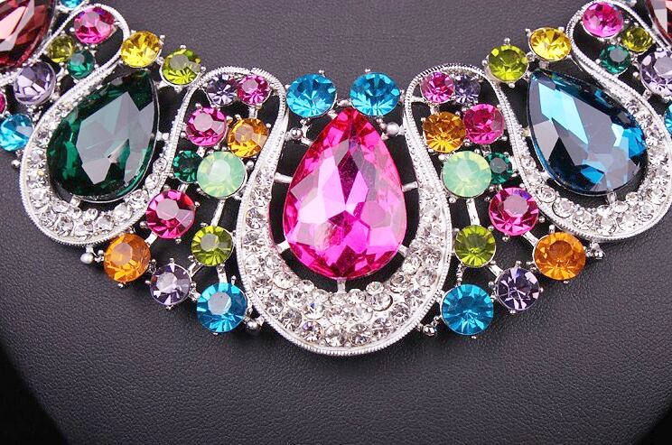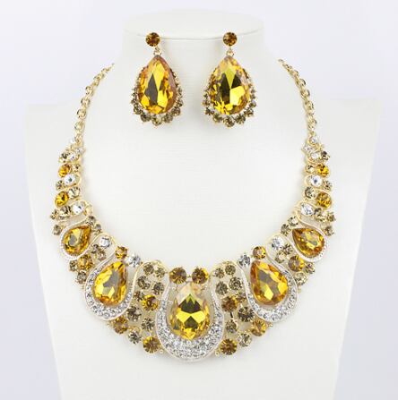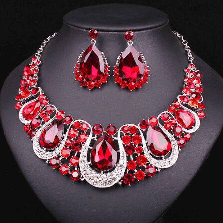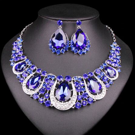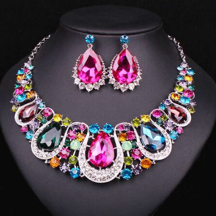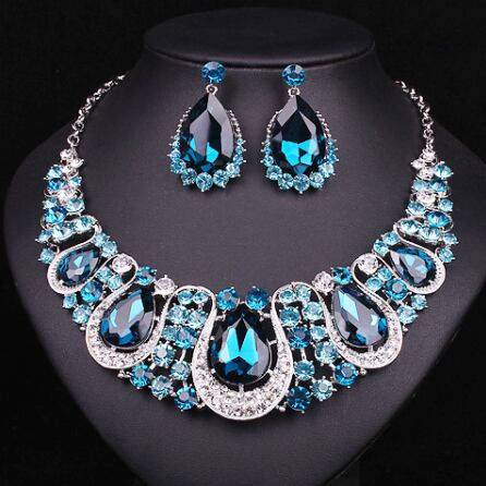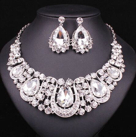 ファッション シルバーメッキ インドクリスタル ステートメント ネックレス ドロップピアスセット ブライダルジュエリーセット ウェディング パーティー衣装 アクセサリー【c0034】 | Pinky5 Costume jewelry
